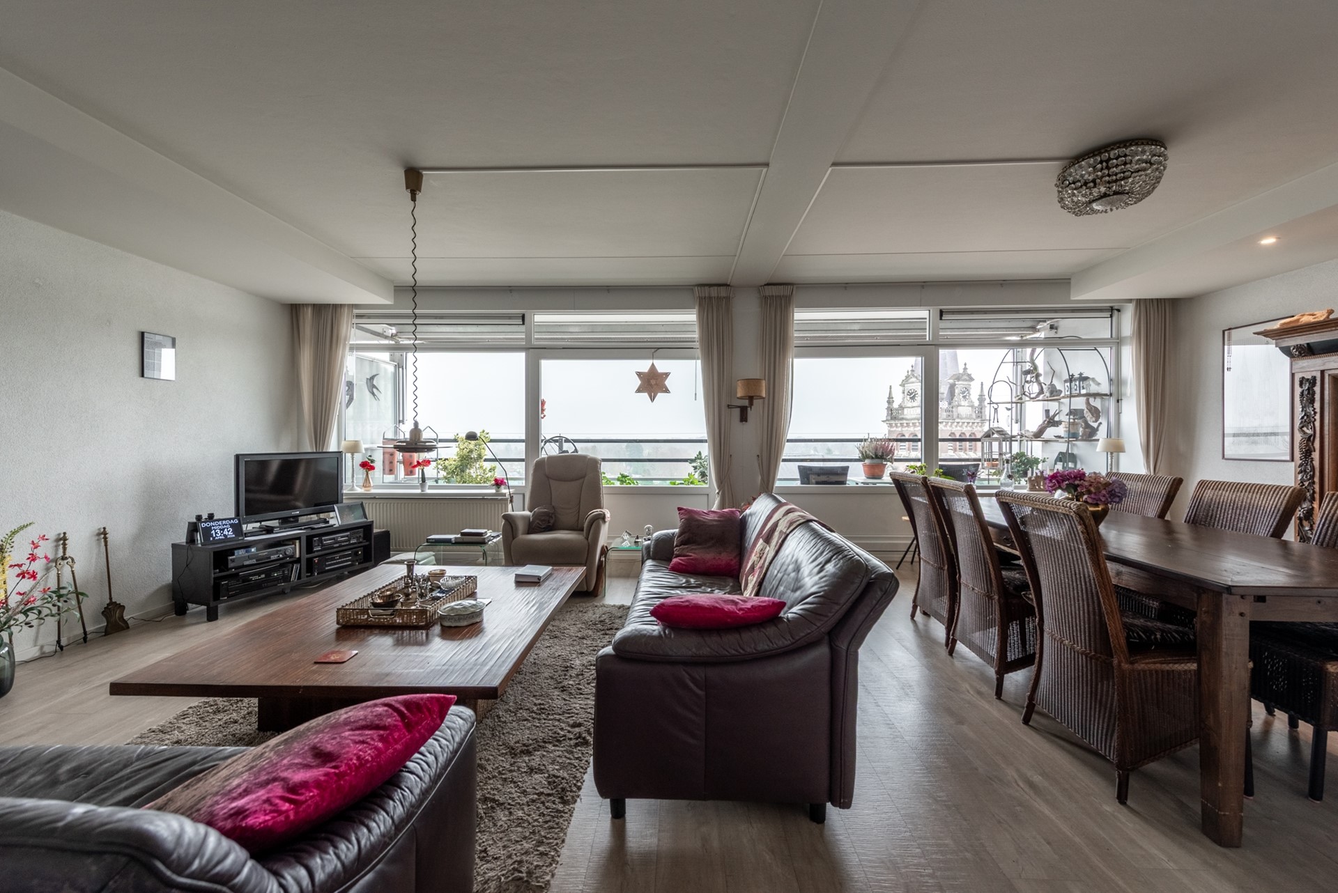 In 2005 gerealiseerd bijzonder fraai luxe afgewerkt VIERKAMER HOEK PENTHOUSE (149m²) op de (bovenste) 9e verdieping met twee balkons (2 x 11m²) en twee eigen bergingen in de onderbouw. Het penthouse is uniek in het complex door de situering over de volledige breedte van het appartementengebouw, w...
