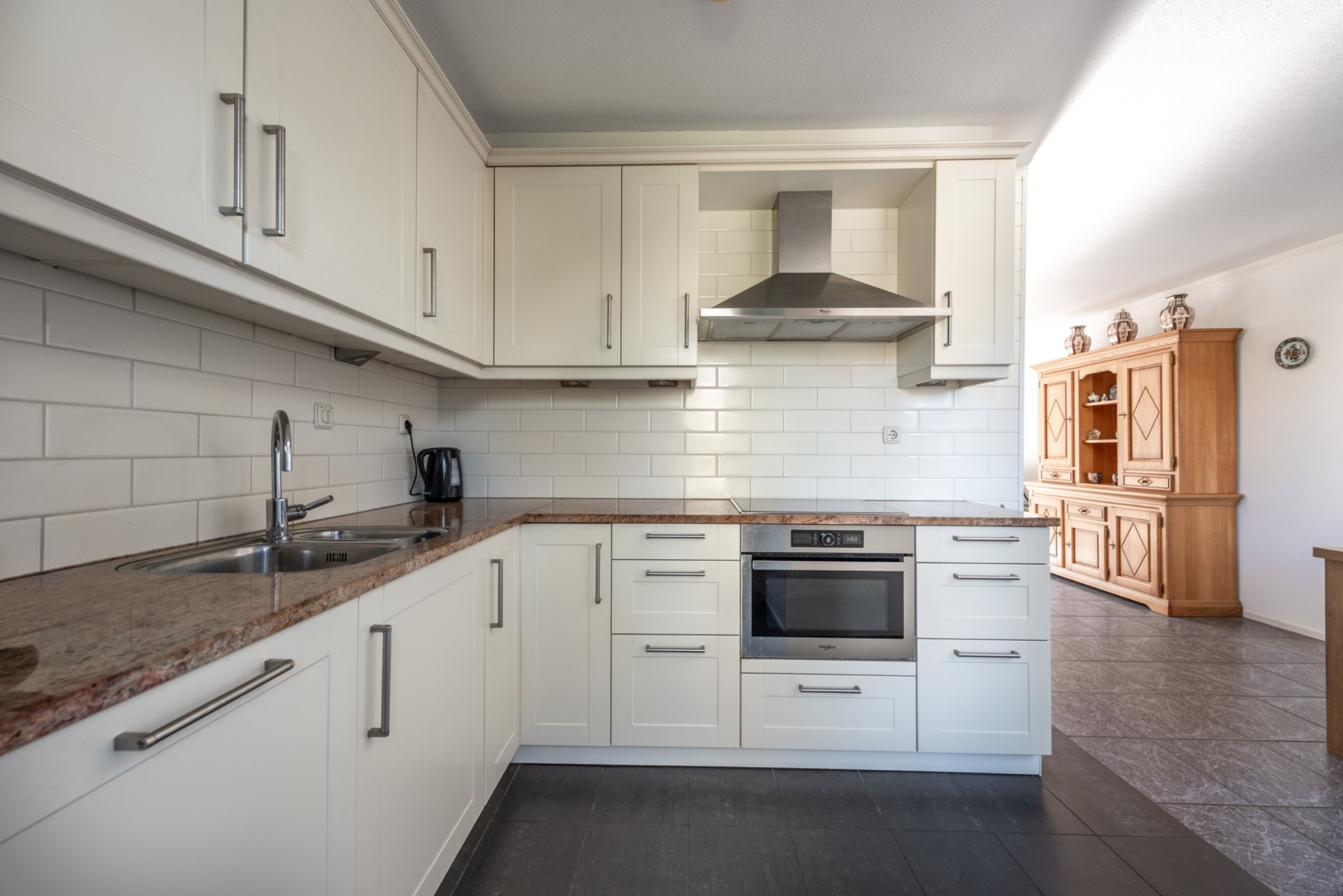 Aan de achterzijde is een schuifpui – ideaal om op mooie dagen je eettafel bijna in de tuin te zetten. De halfopen keuken is modern van uitvoering, praktisch opgezet en bevat natuurlijk alles wat je nodig hebt als o.a. vaatwasser, combi- magnetron, koelkast en vriezer. Aansluitend loop je zo door naar buiten. Even barbecueën in de zomer? Geen probleem!