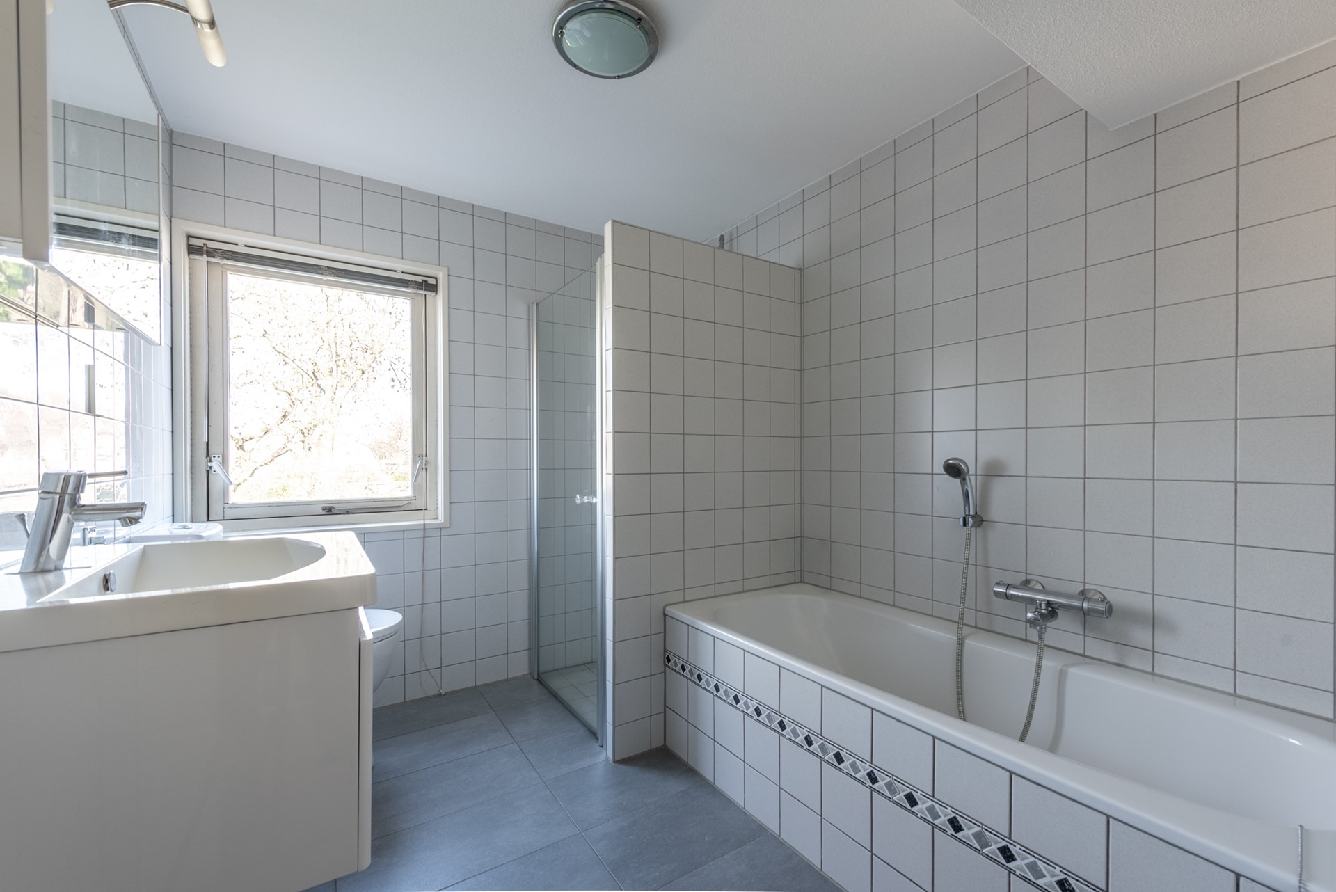Op de eerste verdieping kom je uit op de overloop waar drie comfortabele slaapkamers zijn gecreëerd. Ideaal voor de kinderen, een eigen werkplek aan huis of natuurlijk een ruime master bedroom voor jezelf. Twee kamers liggen aan de voorzijde en één slaapkamer aan de achterkant met uitzicht op je achtertuin én het speelveld. De badkamer is verrassend ruim, supernetjes en uitgerust met een fijn ligbad, inloopdouche, wastafel en een tweede toilet.