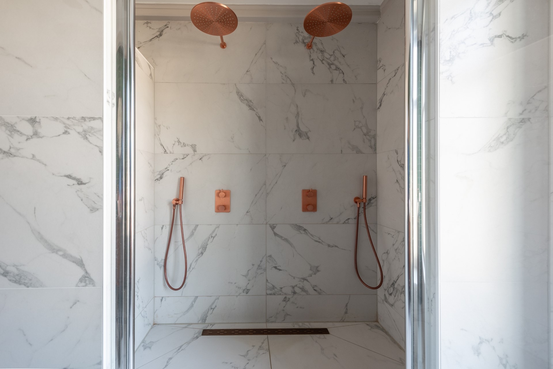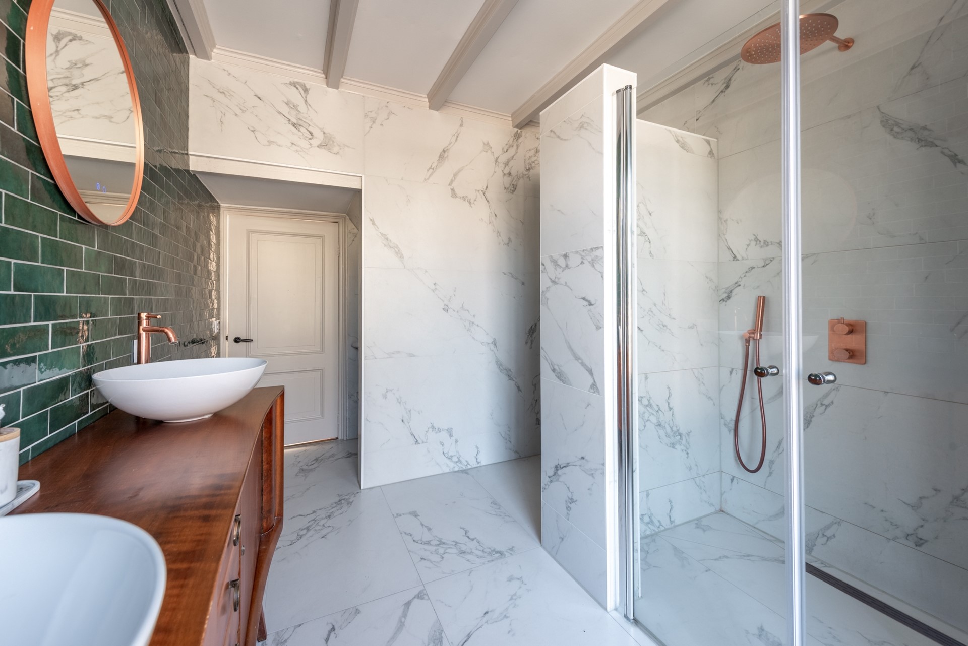 Een vaste trap leidt naar de ruime overloop, met toegang tot vier comfortabele slaapkamers. En, let op: de grootste slaapkamer heeft een deur naar een eigen (!) dakterras. De kers op de taart is de gloednieuwe badkamer, die luxe uitstraalt met dubbel wastafelmeubel, ruime inloopdouche met 2 regendouches en tweede toilet.